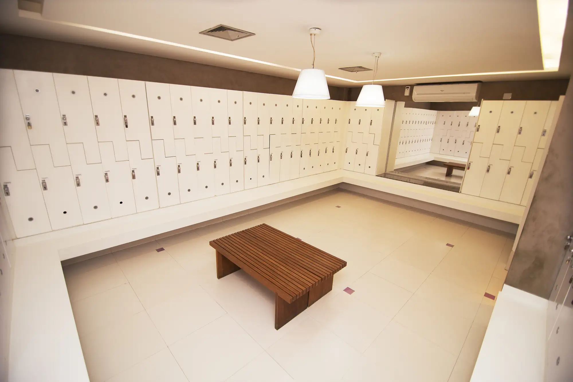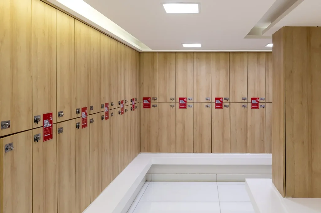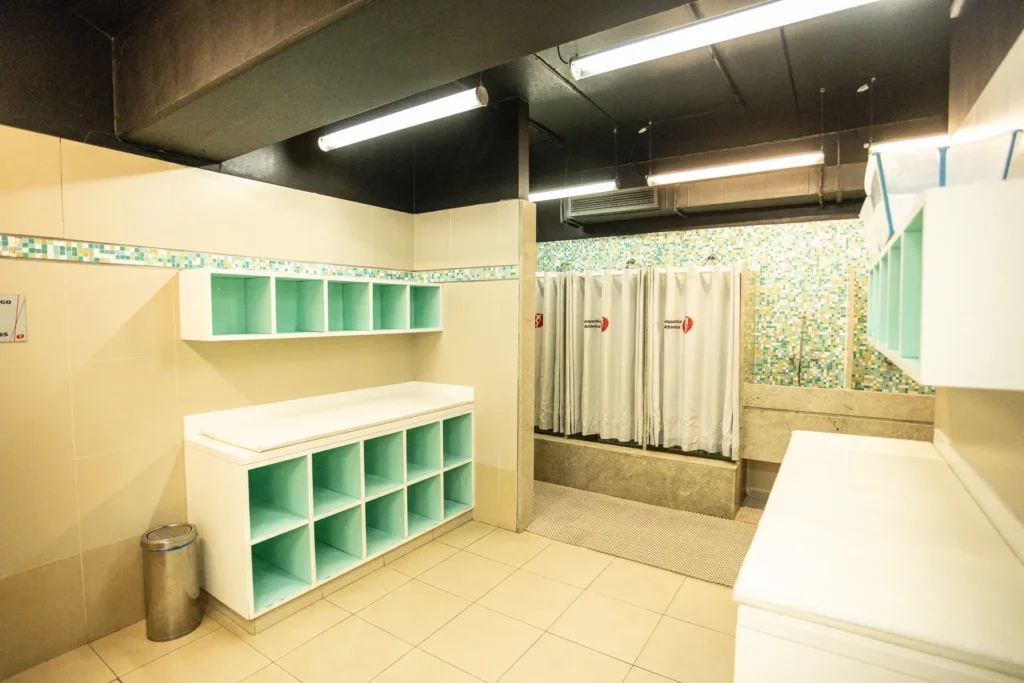 Nossos vestiários são amplos e modernos, equipados com armários individuais para sua comodidade e segurança.