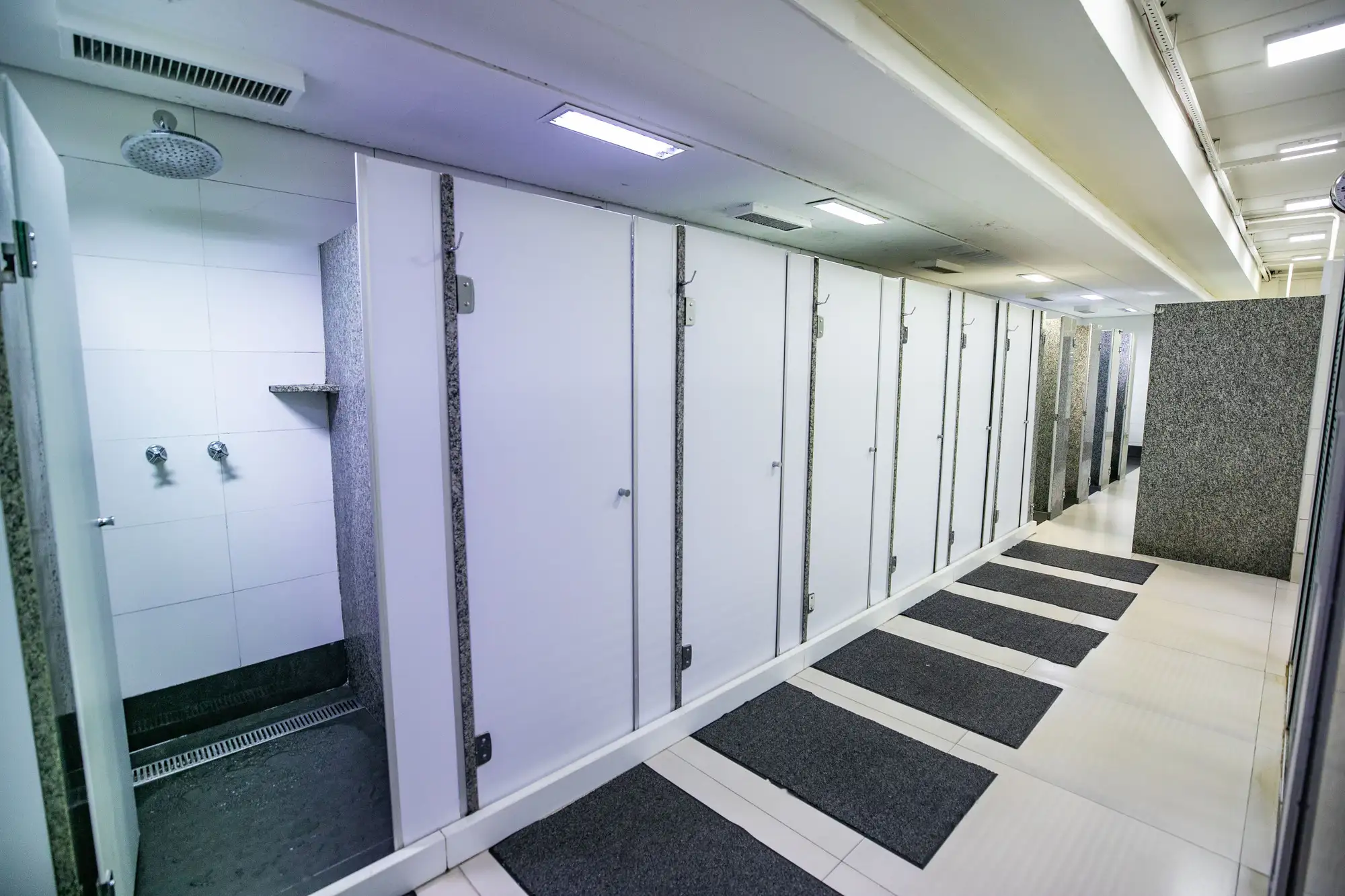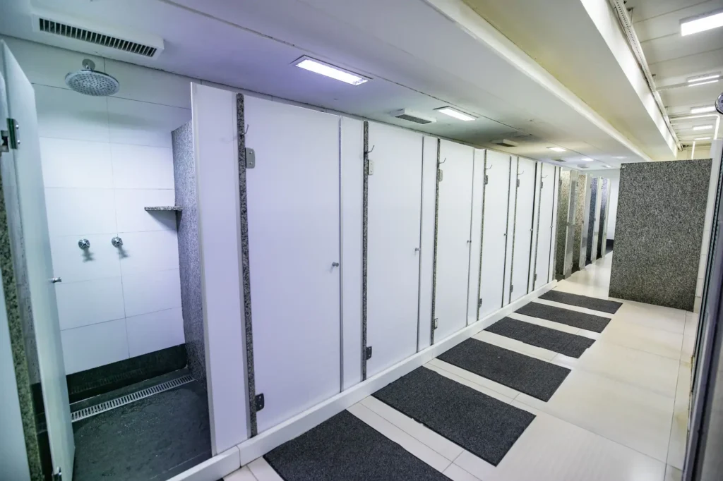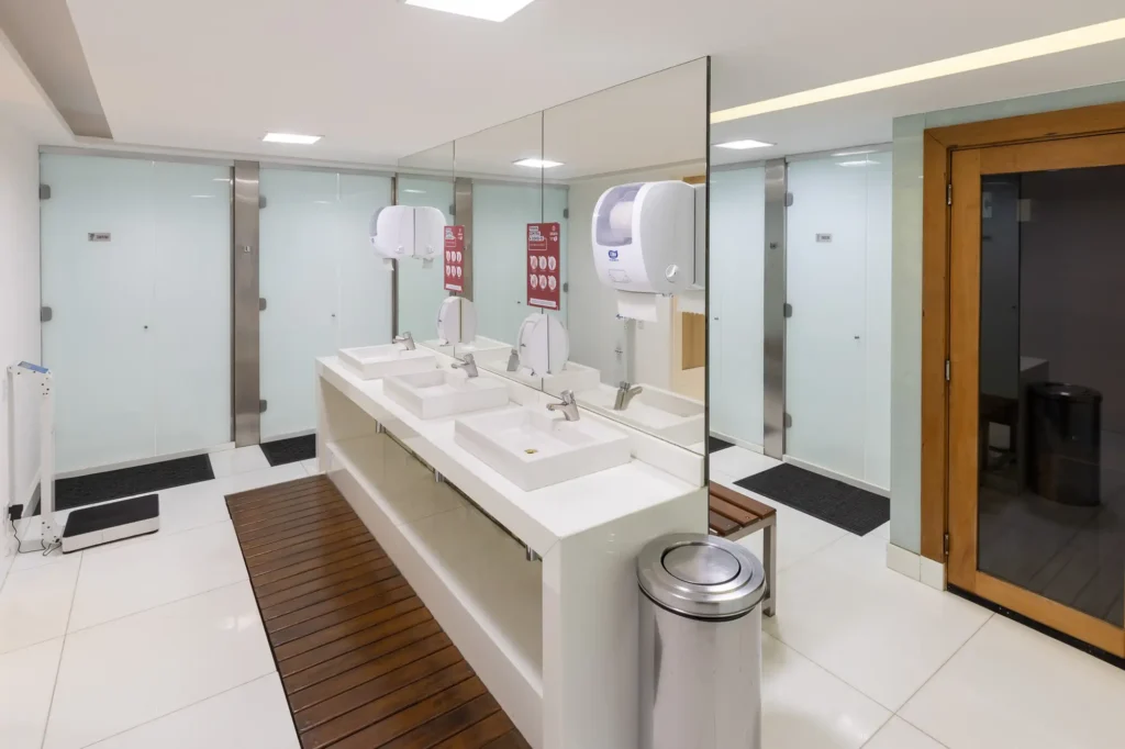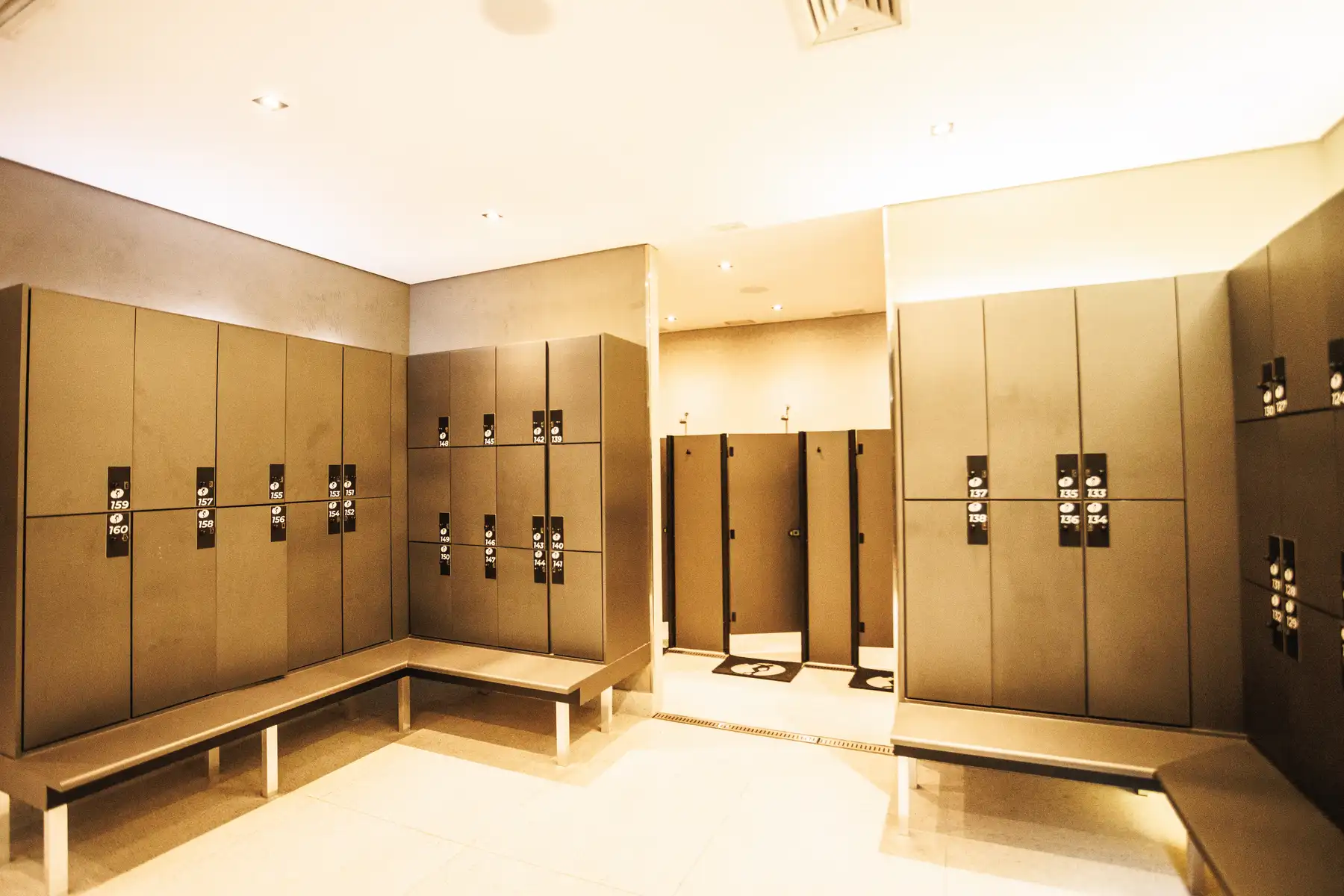 Nossos vestiários são amplos e modernos, equipados com armários individuais para sua comodidade e segurança.