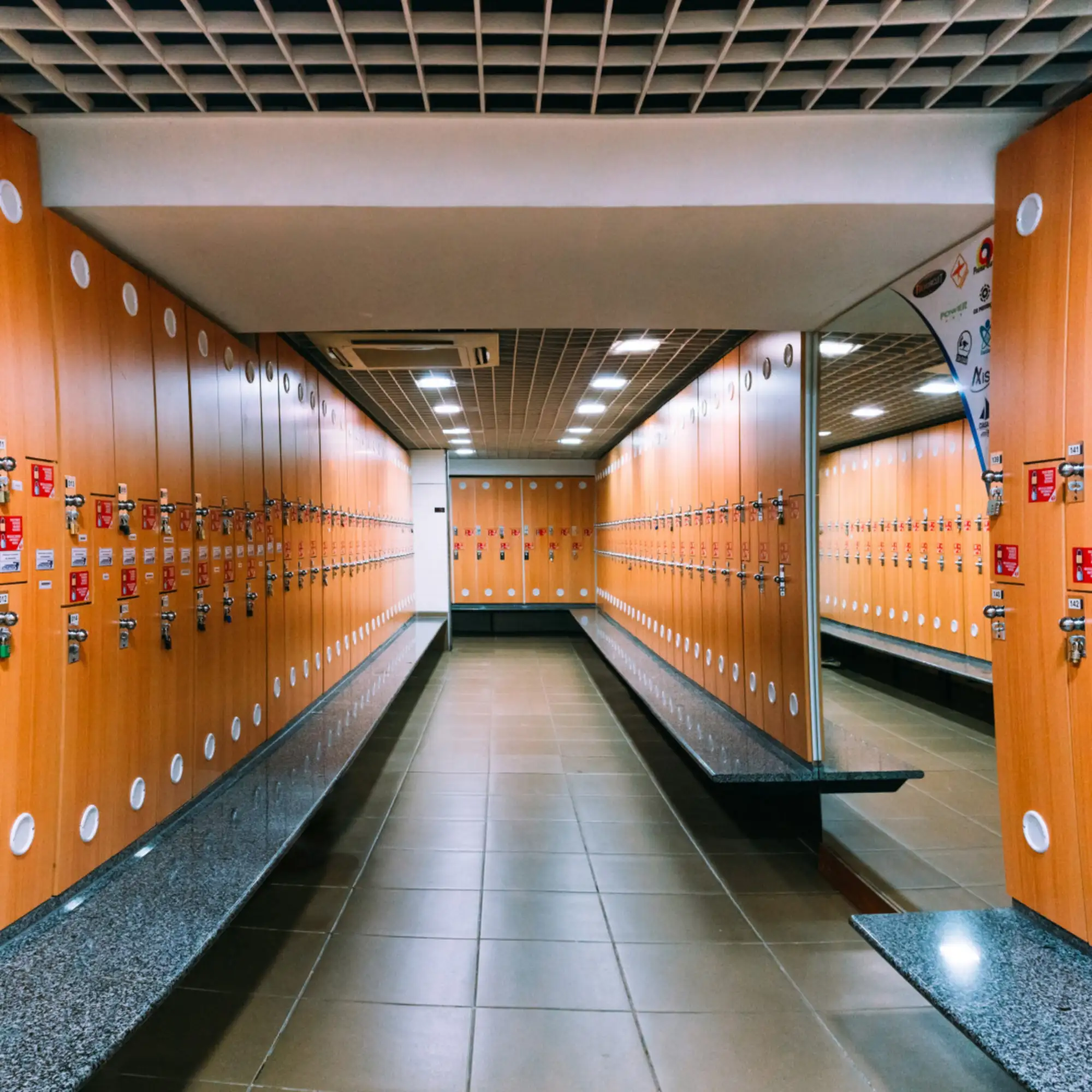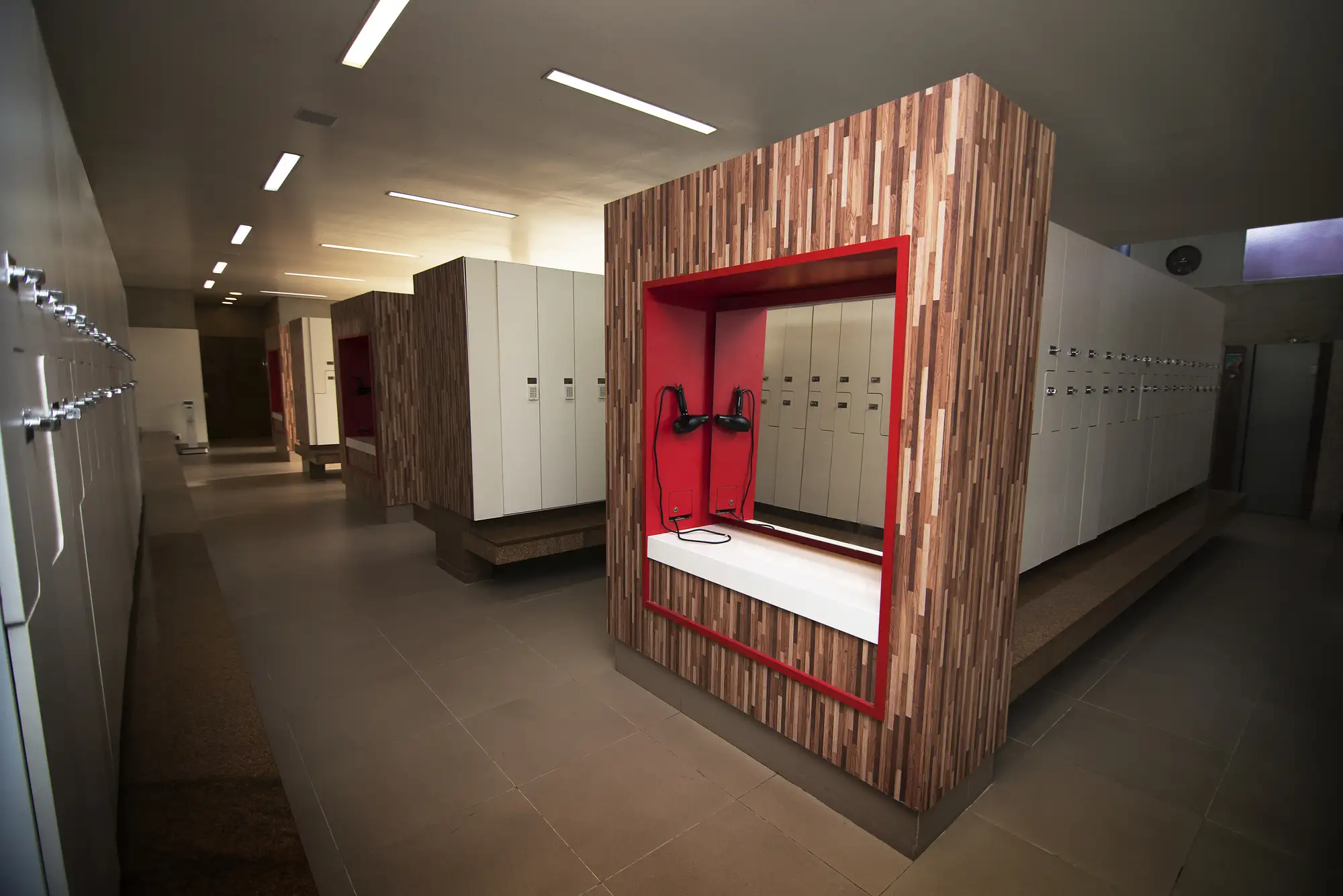 Vestiário, armários e saunas